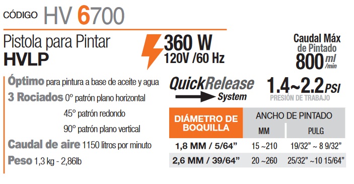 El producto real puede variar a la imagen presentada Pistola para pintar HVLP de 360 W