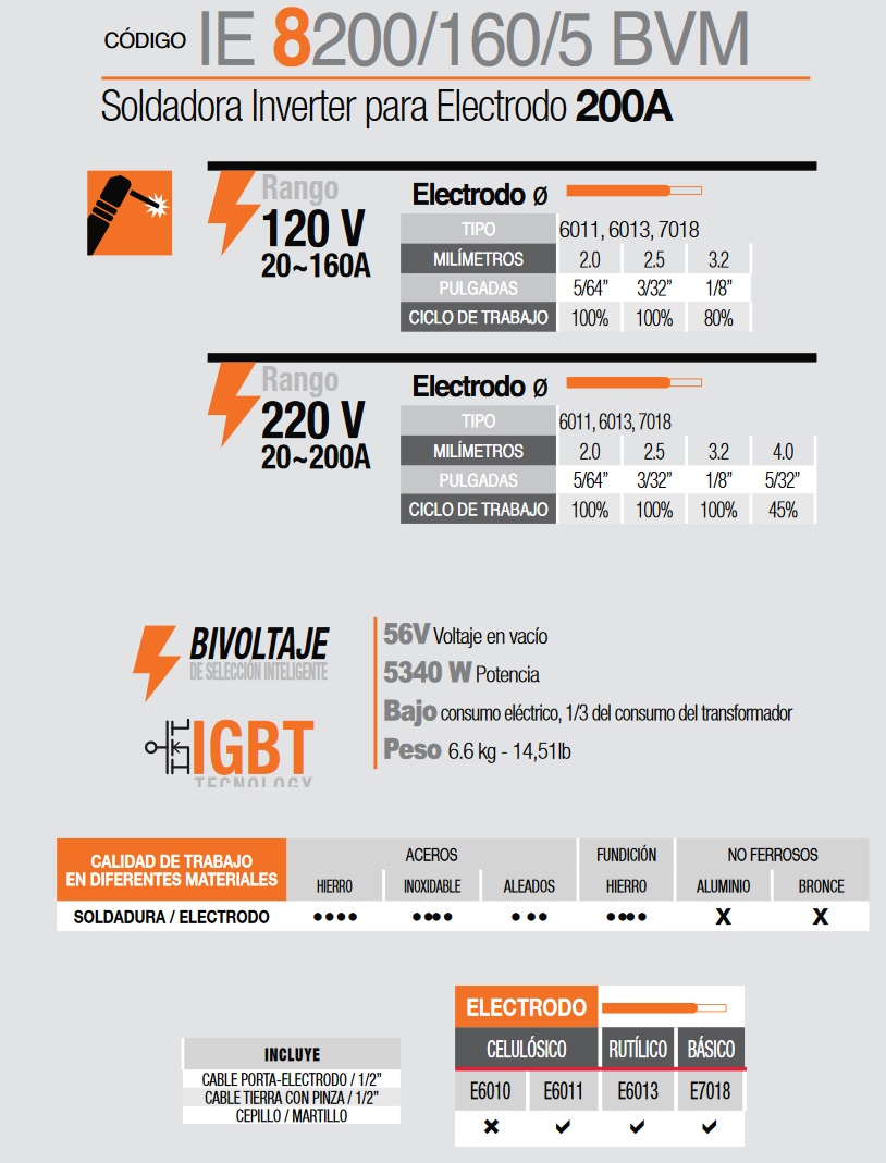 56V Voltaje en vacío 5340 W Potencia Bajo consumo