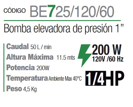 Caudal 40 L / min Altura Máxima 6 mts Potencia 90
