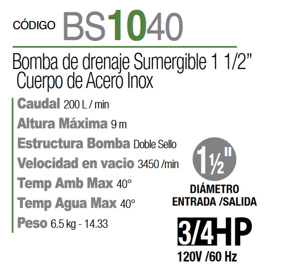 Caudal 130 L / min Altura Máxima 7 m Velocidad en