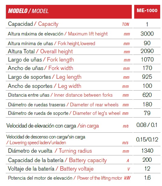 Se requiere el uso de tarima con zanco libre, para el funcionamiento de este montacargas.