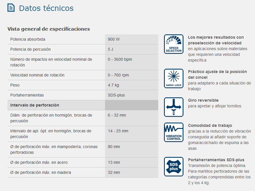1- El más rápido de la clase: un 30% superior a los competidores en las perforaciones (Ø 25 mm).