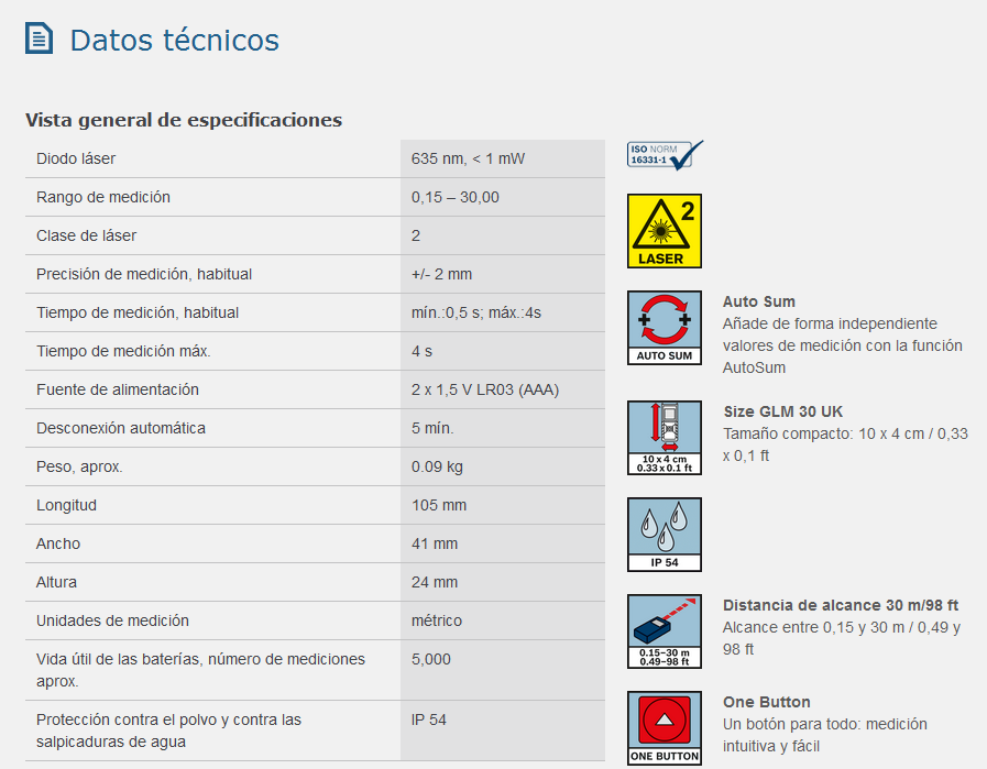 3- Único Medidor láser con certificación ISO. Mediciones precisas de hasta 30 de distancia.