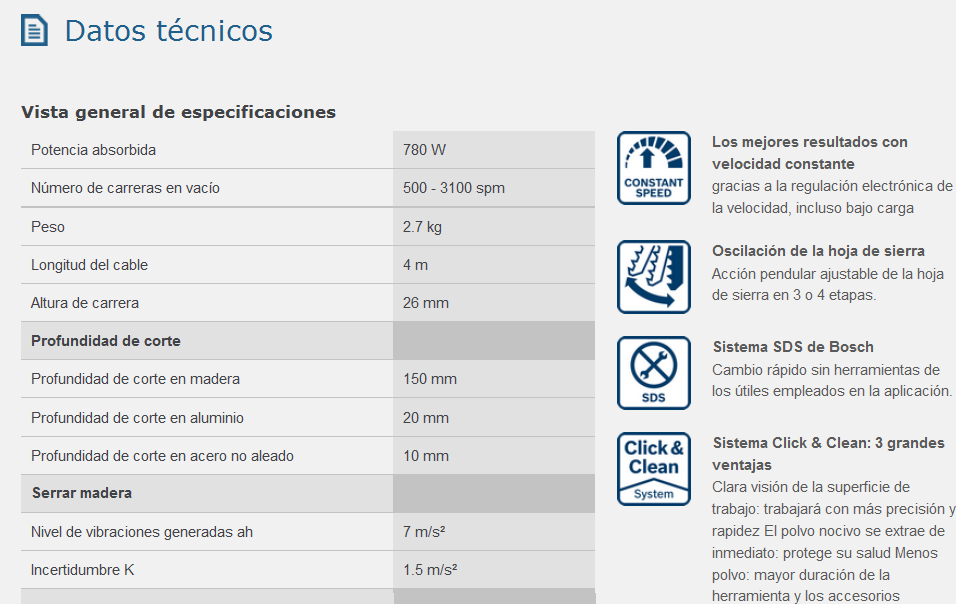 Movimiento pendular ajustable en 4 niveles para cortes finos o bastos