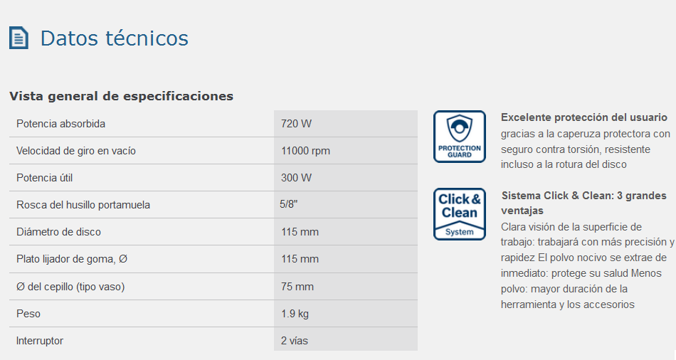 amoladoras angulares de la misma categoría de potencia, que proporciona