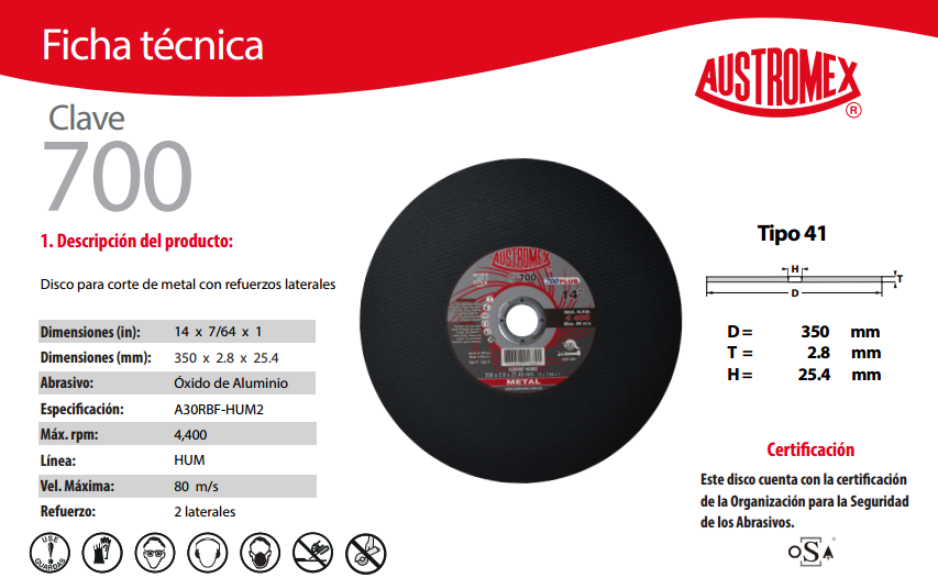 El producto real puede variar a la imagen presentada Disco para corte de metal 14