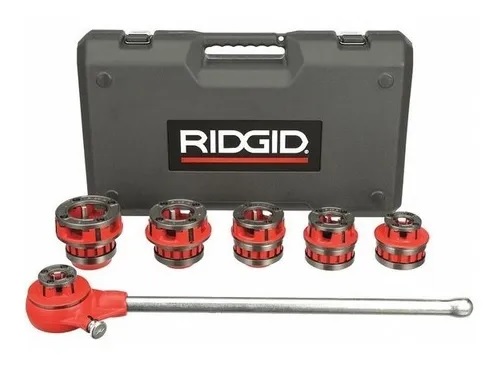 Todos los juegos y roscadoras emparejados constan de cabezales roscadores, conjunto de trinquete, mango de trinquete y terrajas de aleación.