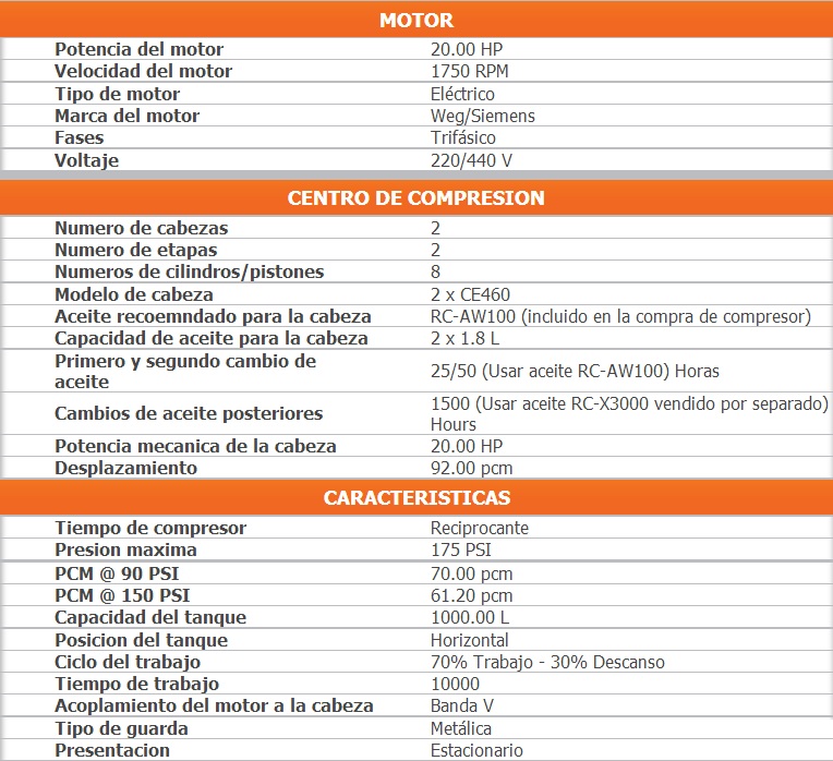 El producto real puede variar a la imagen presentada Compresor de aire de 2 etapas 20 Hp 1000L