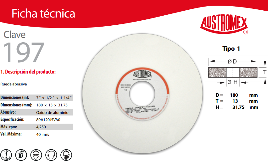 Rueda vitrificada blanca de 7" x 1/2" G120