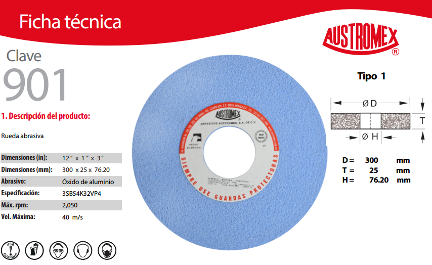 Rueda azul vitrificada de 12" G54