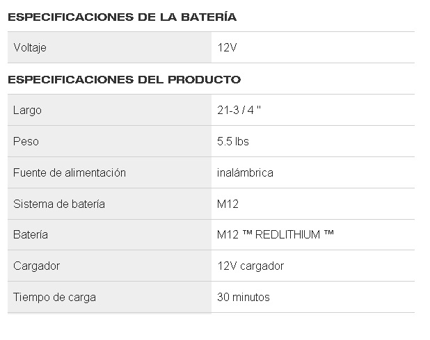 1 baterÃas REDLITHIUMTM M12TM, 1 cargador M12TM
