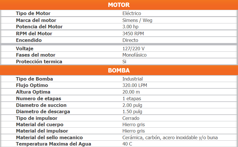 Bomba adecuada para uso semi-industrial, sistemas de riego por aspersión, por goteo, pequeñas lavanderías, etc.