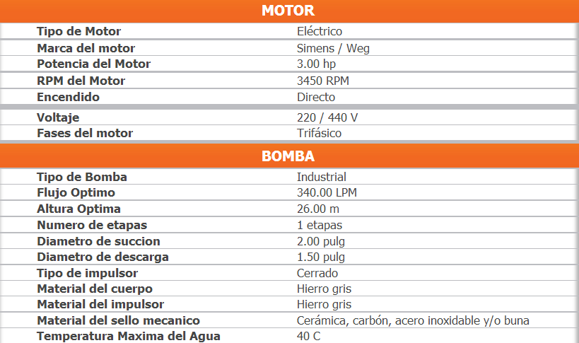 Bomba adecuada para uso semi-industrial, sistemas de riego por aspersión, por goteo, pequeñas lavanderías, etc.