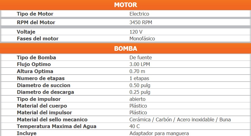Ideal para la recirculación de agua en fuentes y acuarios.