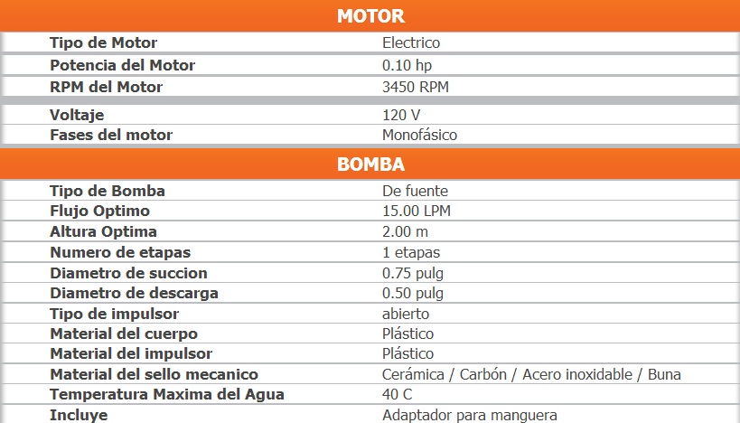 Ideal para la recirculación de agua en fuentes y acuarios.