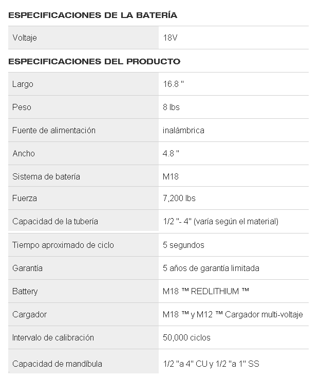 Capacidad: 1/2" - 4" cobre, acero de 1/2" - 2"