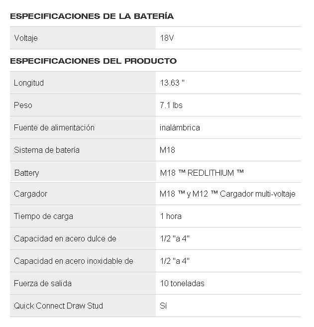 Fuerza de salida: 10 tons