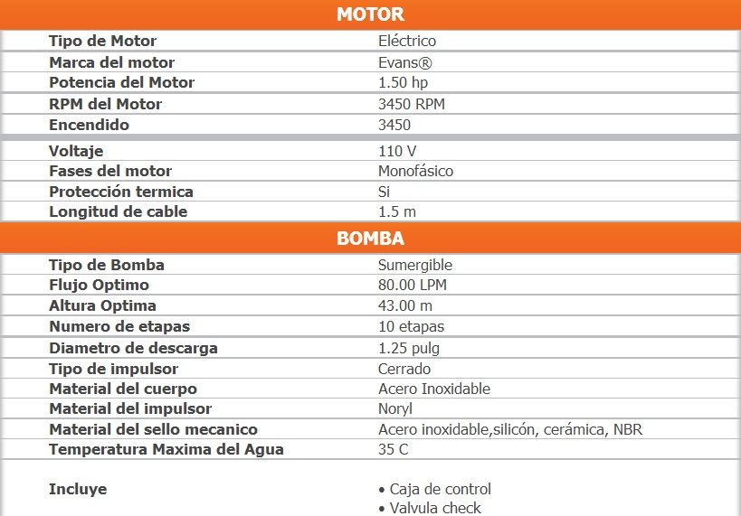 El producto real puede variar a la imagen presentada Bomba sumergible de pozo de 43m 1.5HP