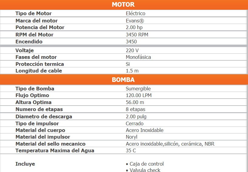 Ideal para extracción de agua de pozos profundo.