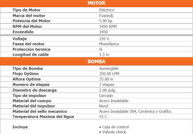 Ideal para extracción de agua de pozos profundo.