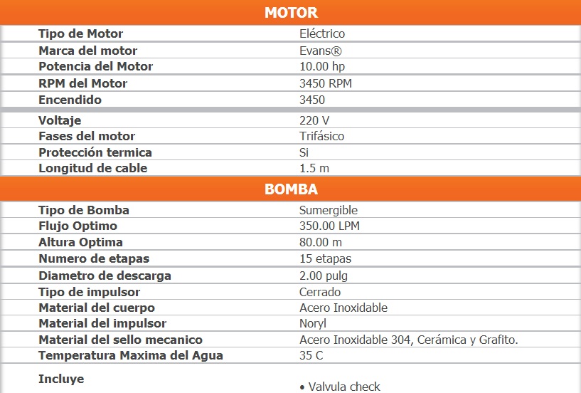 Ideal para extracción de agua de pozos profundo.