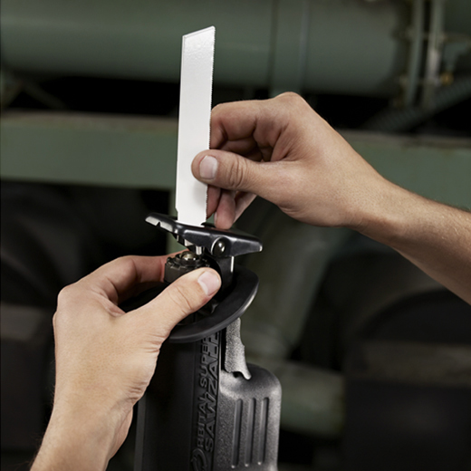 La abrazadera de hoja QUIK-LOK ™ proporciona cambios de hoja rápidos y fáciles, y una funda de transporte resistente a los impactos proporciona espacio para almacenar una variedad de accesorios.