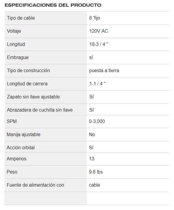 Cortes por minuto (SPM) sin carga: 0 - 3000