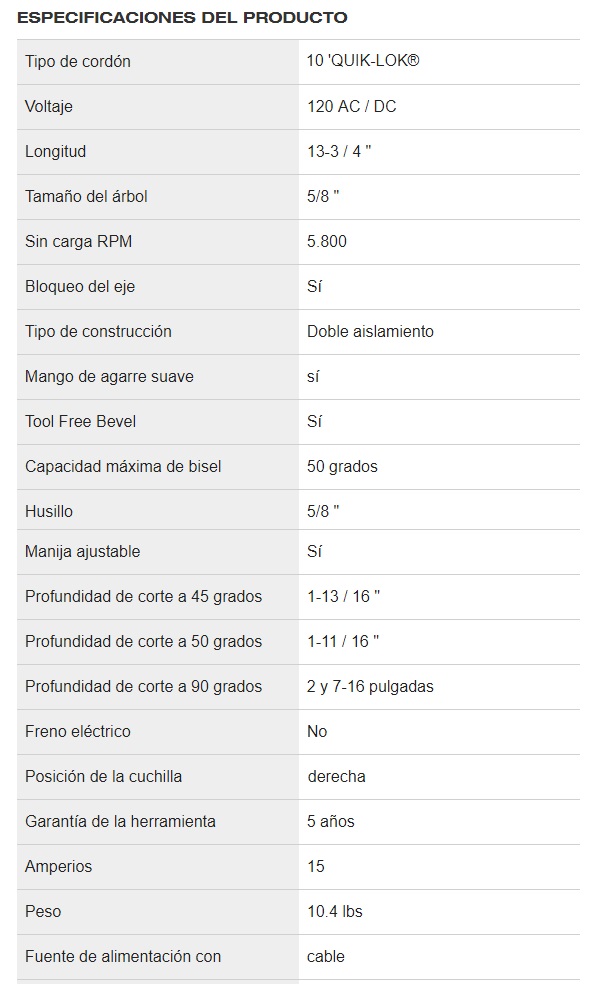 Diámetro del disco: 7-1/4"