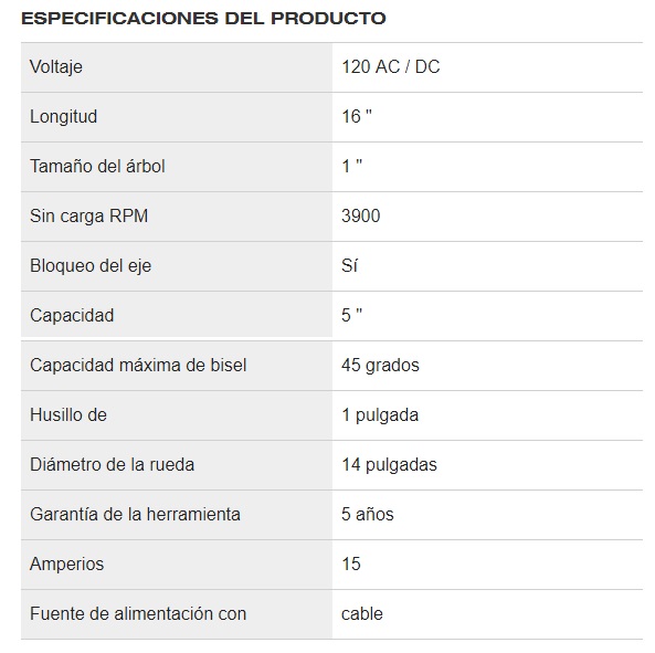 Con un potente motor de 15 A, 4,0 caballos de fuerza máxima y velocidades de hasta 3900 RPM, esta máquina de corte abrasivo permite un corte rápido de la pista de paneles de yeso en haces, ángulos de hierro, conductos, tuberías, canales, tubos y barras hasta 5 " maxima capacidad.