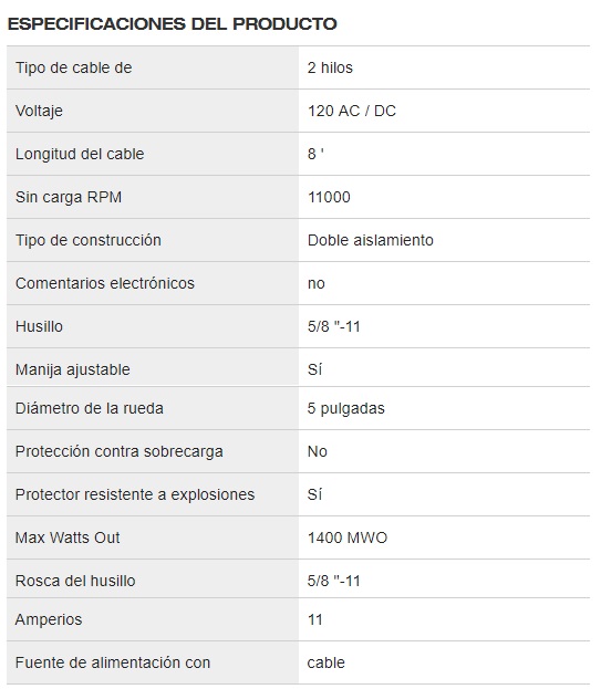 Potente motor de 11 A, 11,000 RPM: proporciona el máximo rendimiento y durabilidad