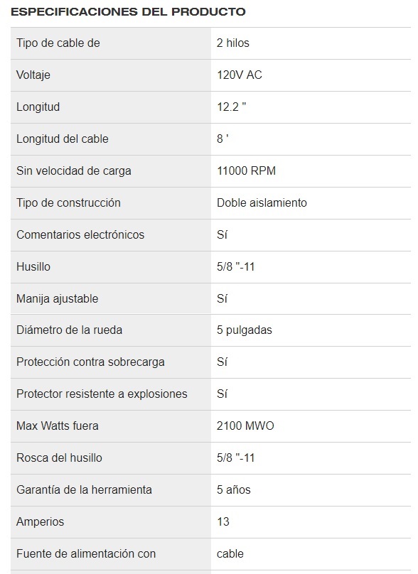 Potente motor de 13 A, 11,000 RPM: proporciona el máximo rendimiento y durabilidad