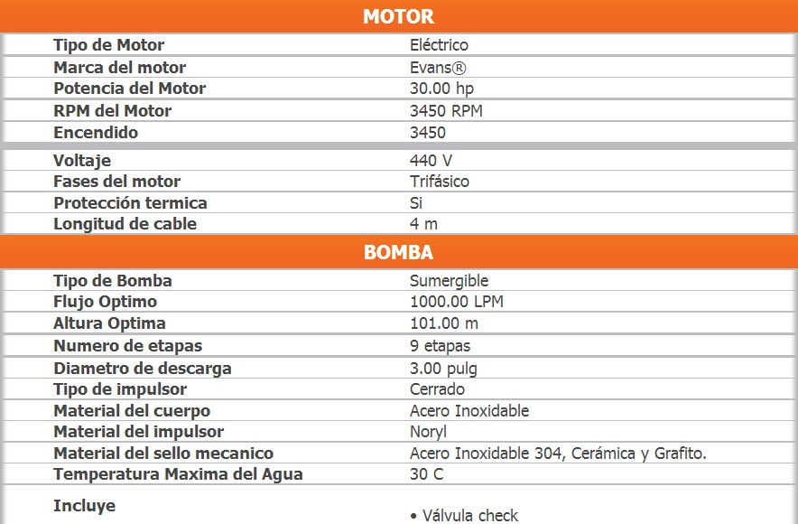 Ideal para extracción de agua de pozos profundo desde 6 pulgadas de Ademe.
