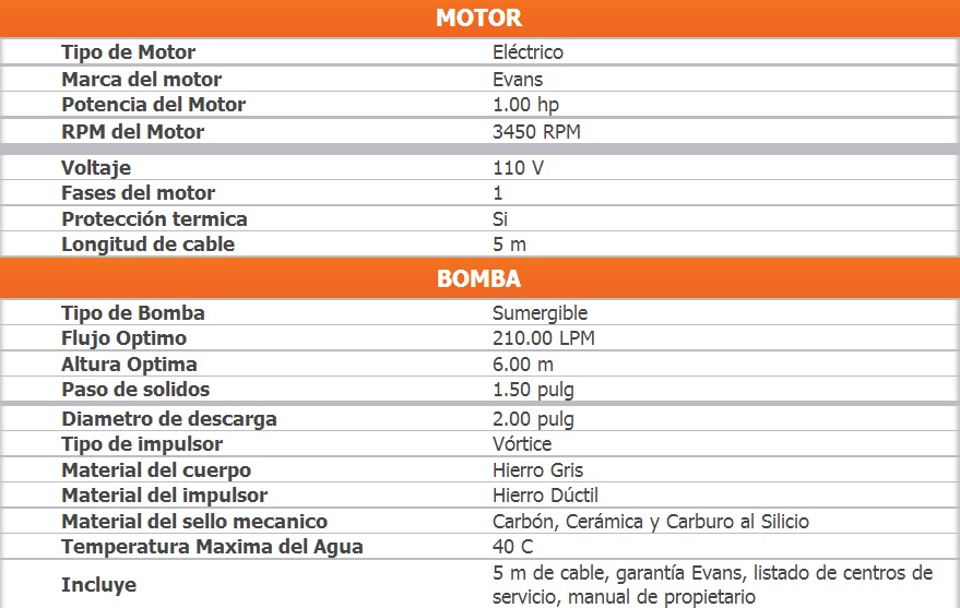Ideales para plantas de tratamiento, desahogo de fosas sépticas, desagüe de estacionamientos subterráneos.