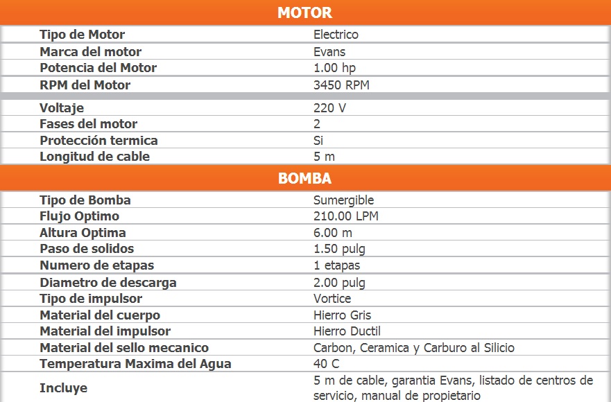 Ideales para plantas de tratamiento, desahogo de fosas sépticas, desagüe de estacionamientos subterráneos.