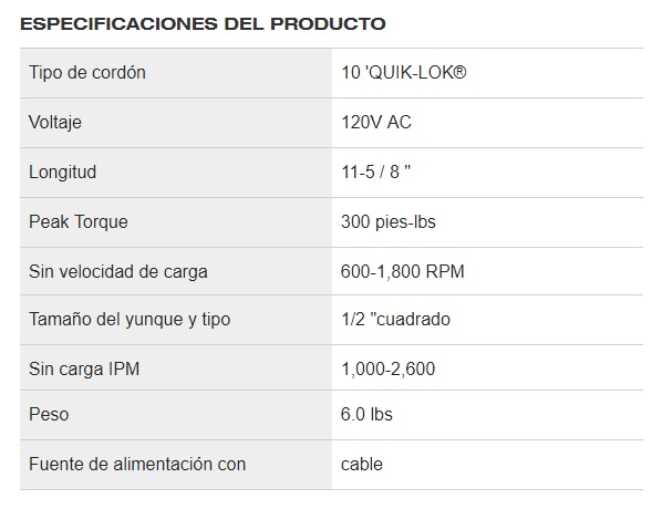 Potente motor de 7.0 amperios: produce 300 pies-lbs de torque y 1800 RPM para una productividad máxima