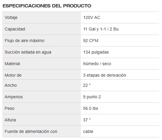 Capacidad de succión: 15 galones manguera de 2"