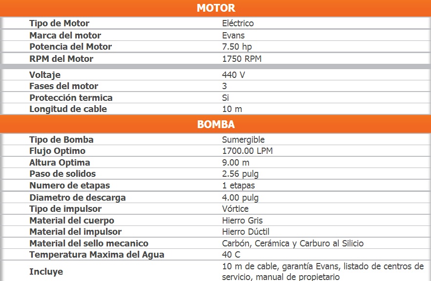 Ideales para plantas de tratamiento, desahogo de fosas sépticas, desagüe de estacionamientos subterráneos.