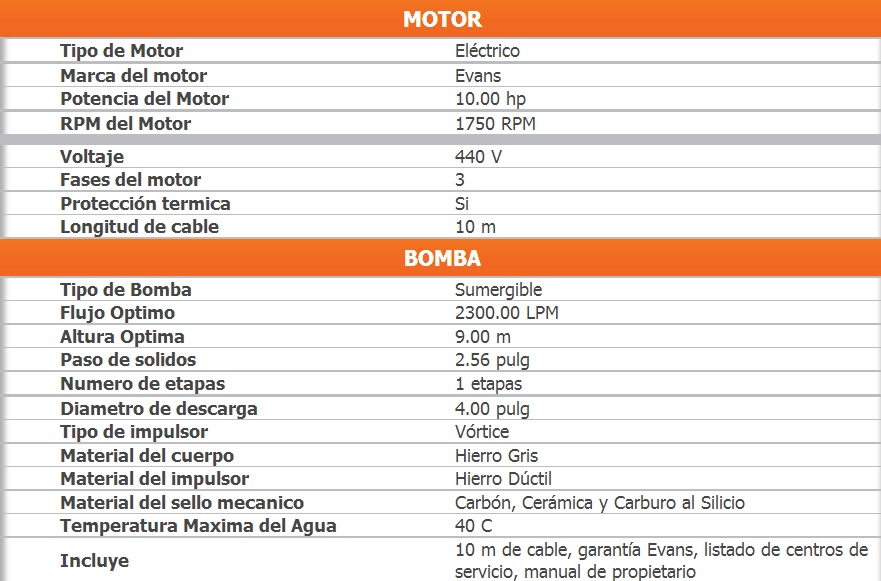 Ideales para plantas de tratamiento, desahogo de fosas sépticas, desagüe de estacionamientos subterráneos.