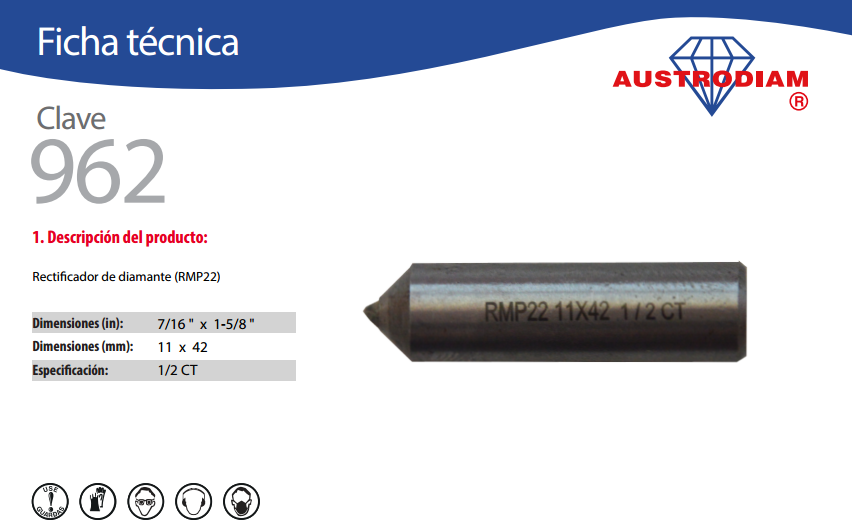 El producto real puede variar a la imagen presentada Rectificador de diamante 1/2 K