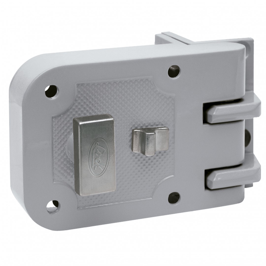 Picaporte integrado tipo mordaza con cierre de golpe vertical.