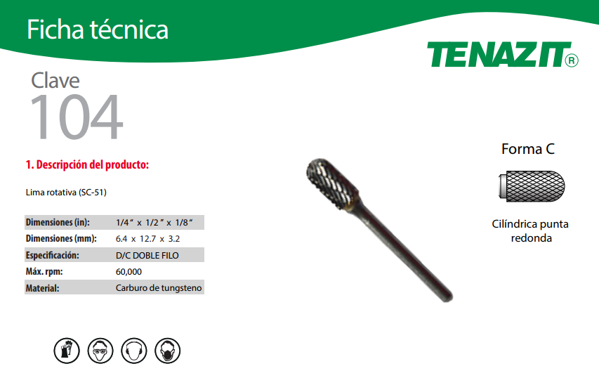El producto real puede variar a la imagen presentada Lima rotativa cilíndrica punta redonda SC-51