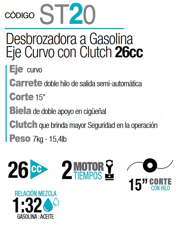 Eje recto Disco de 10” Eje recto sólido Biela d