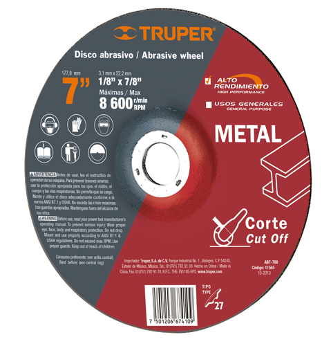Disco p/corte metale, tipo27, diámetro 7, alto rendimiento