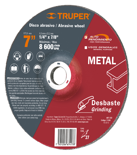 Disco desbaste metal, tipo27,diámetro 7,alto rendimiento