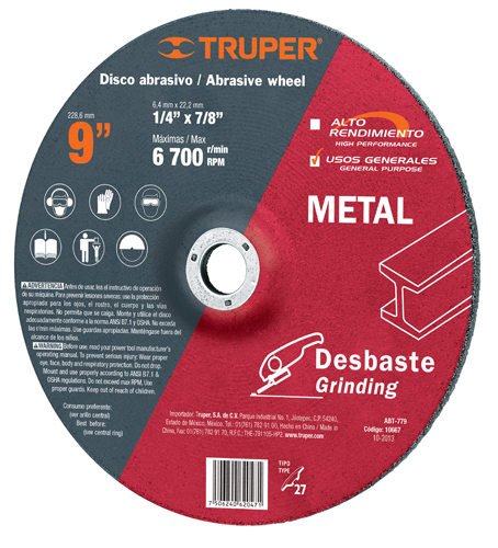 Disco para desbaste de metal, tipo 27, diámetro 9