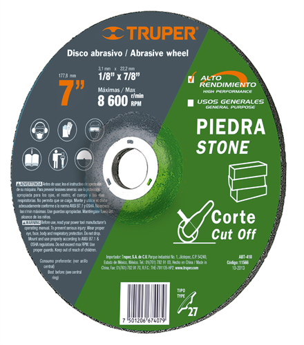 Disco para corte de piedra, tipo 27, diámetro 4-1/2