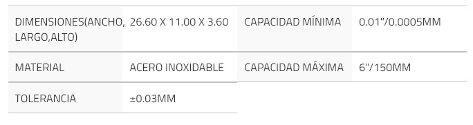 Usos: Para mediciones externas, internas, escalones y profundidad.