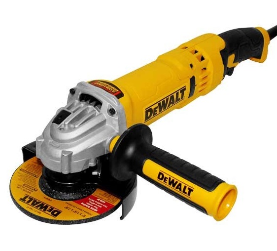 Esmeriladora, guarda, empuñadura lateral antivibración Multiposición disco de 5" para rectificar metal modelo DW4619 y llave.