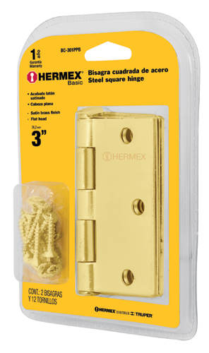 Bisagra de acero latonado cabeza plana de 3 1/2"