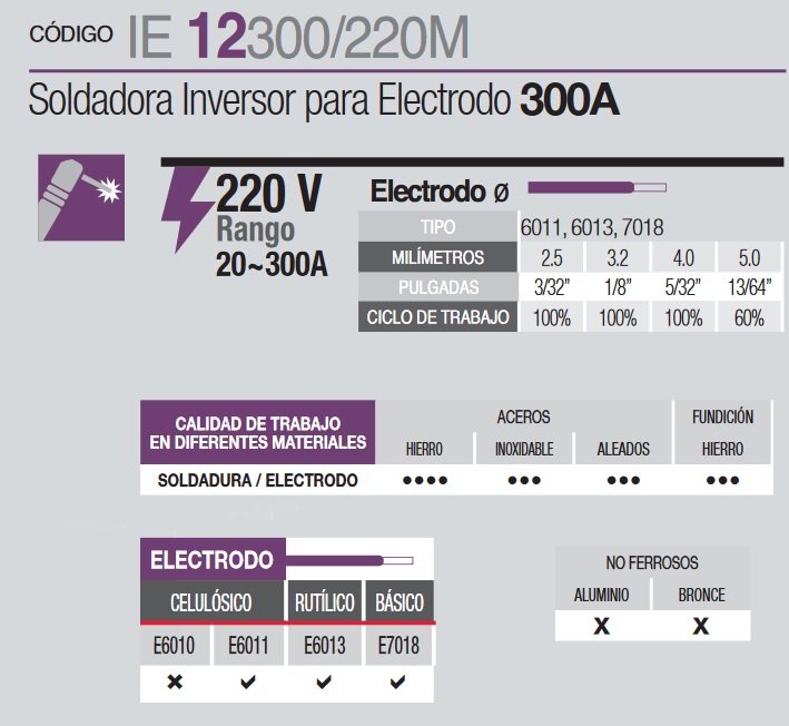 56V Voltaje en vacío 5340 W Potencia Bajo consumo